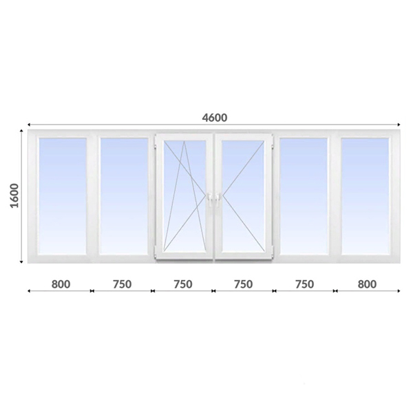 Балкон П-образный 1600x4600 WDS 60 мм 2-камерный стеклопакет энергосберегающий