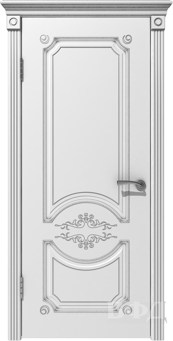 Межкомнатная дверь Милана Белая эмаль патина серебро